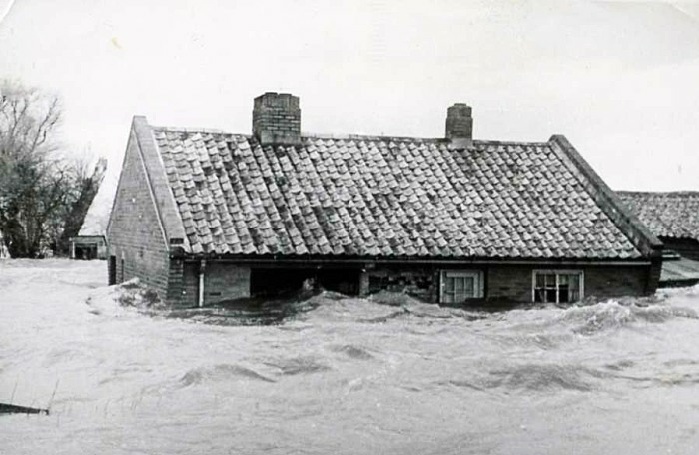 Choppy water almost up to the eaves, as on many farmhouses in the Fen.