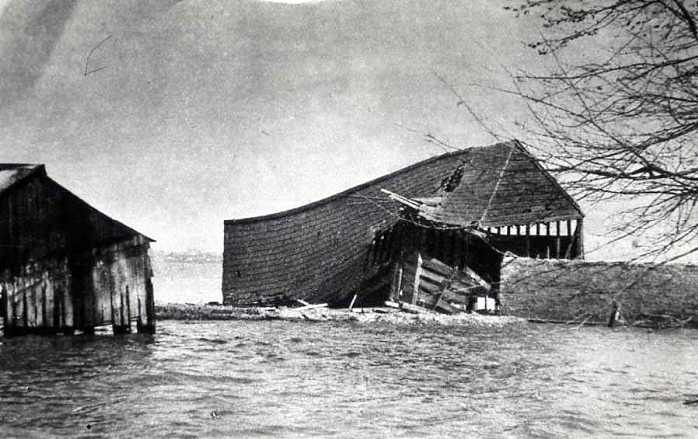 A wet and windy day. Many farm buildings were seriously damaged by both wind and water.